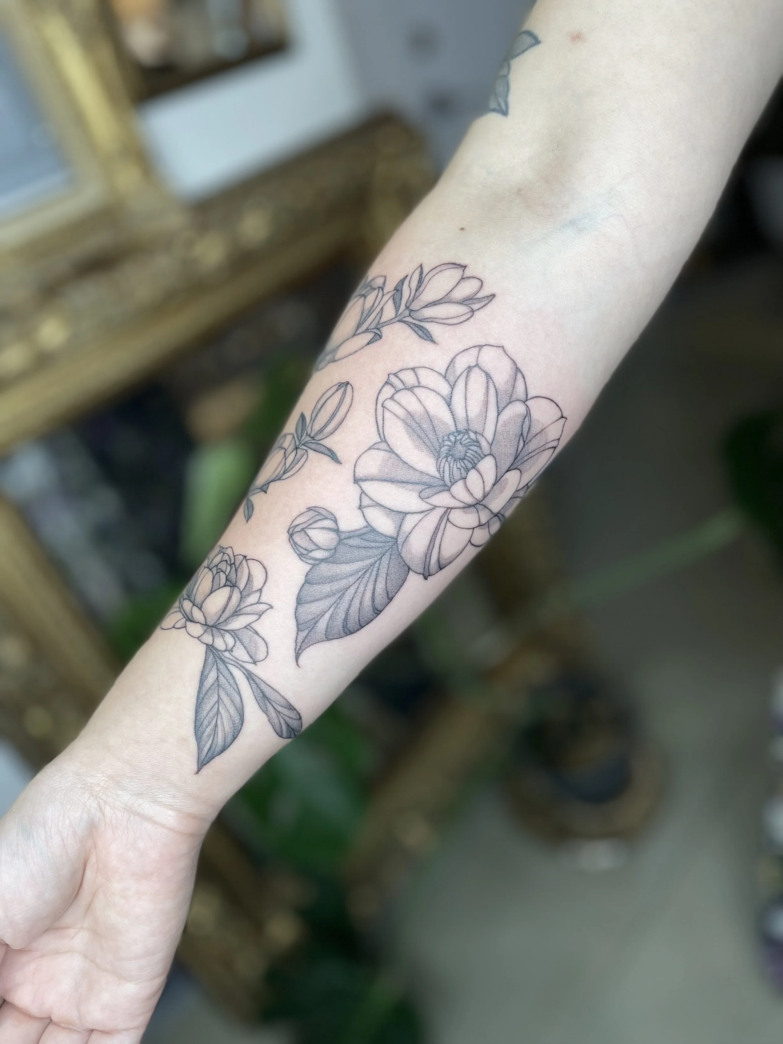 Courtney is a fine line artist who has over 7 years of professional tattooing experience, having tattooed in MA and NYC before moving to Providence. She loves to tattoo plants, flowers, anime and fine art pieces. When she’s not working, she’s likely at a plant store with a drink in hand or at home watching a trashy reality tv show.