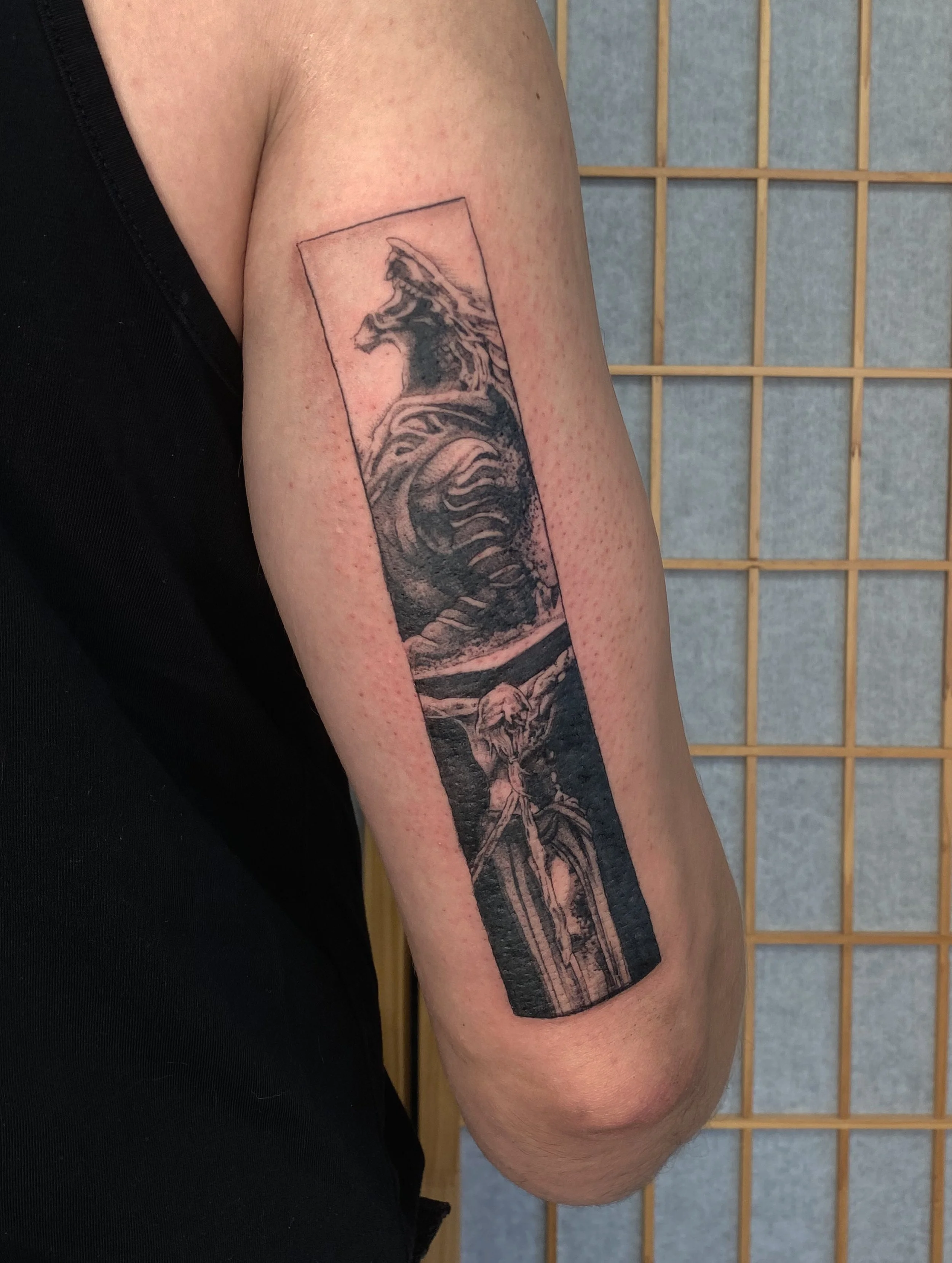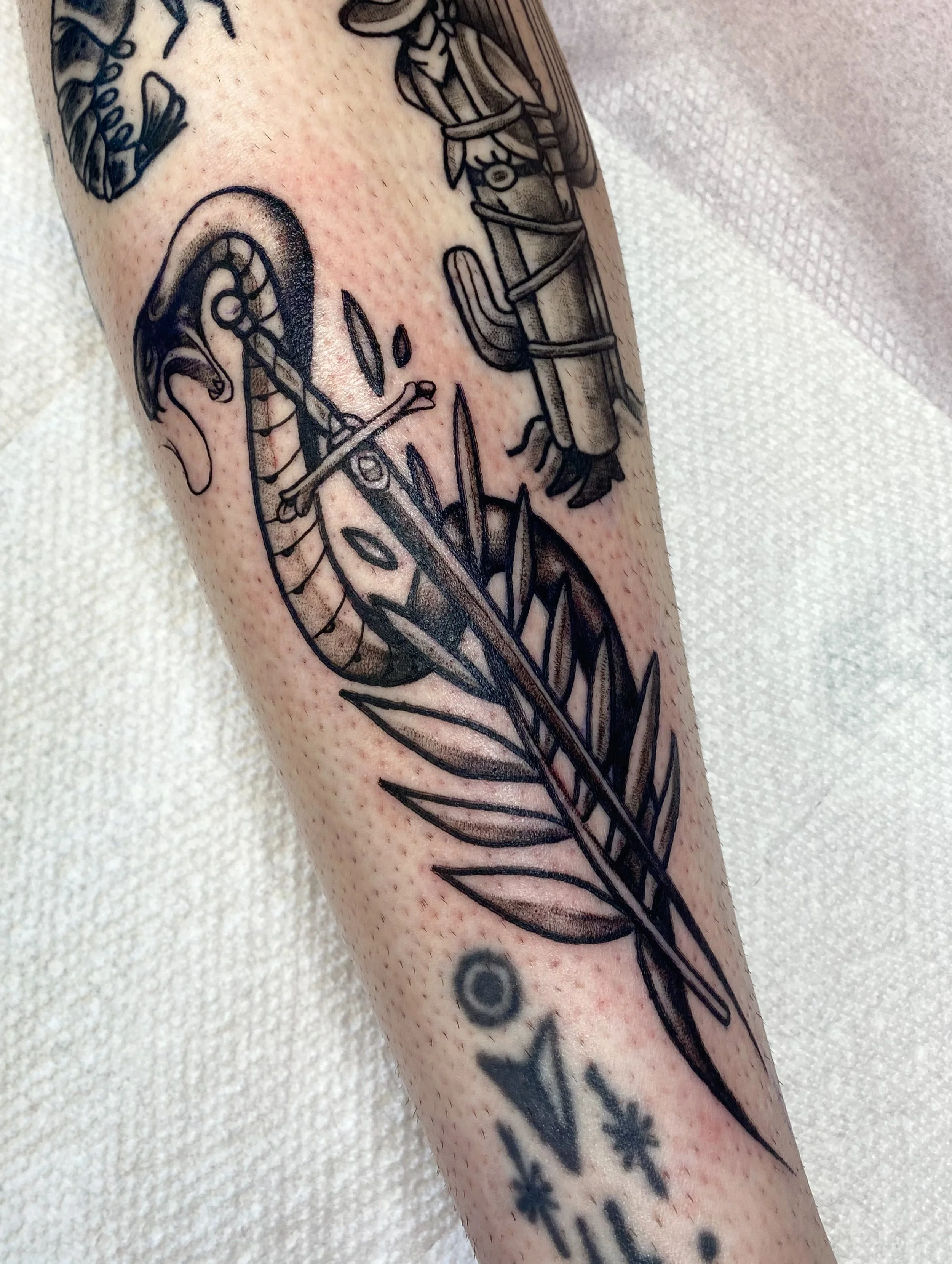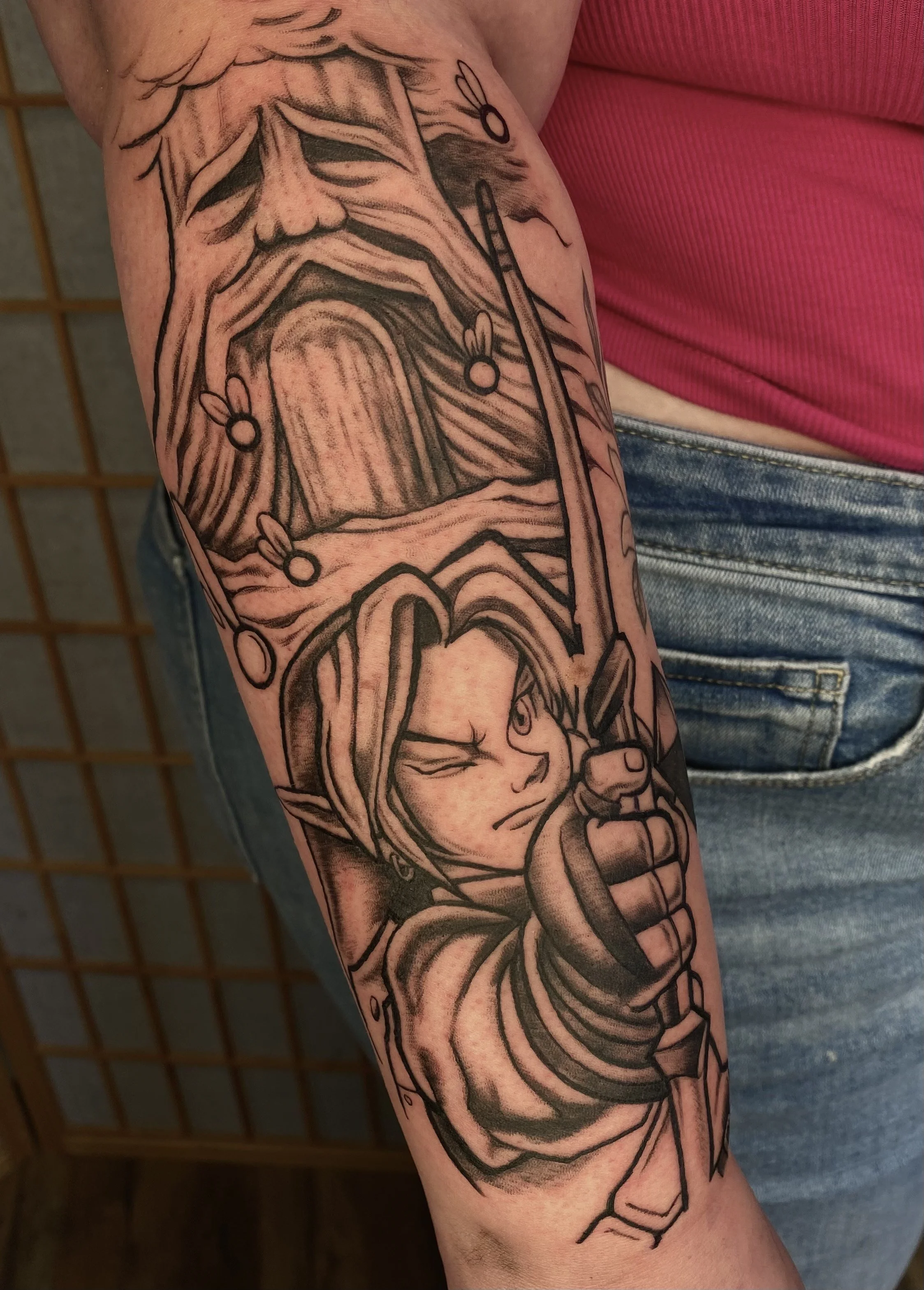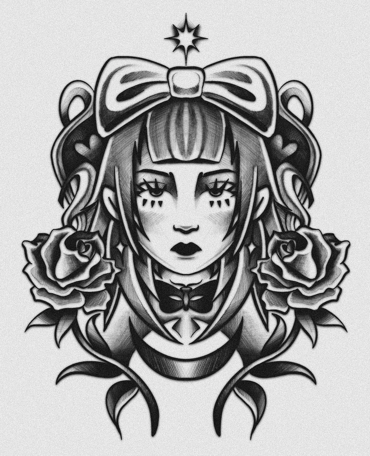 I am Lilly, resident of Angels since June of 2023 and specialize in black and grey tattoos with a touch of American trad inspired color pieces. You will see I revolve around anime, pop culture, and video game tattoos but will happily accept anything that comes my way!